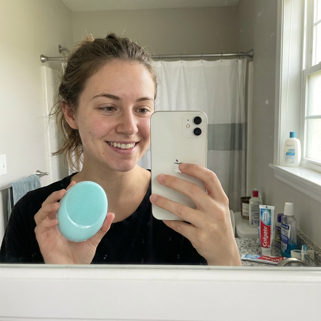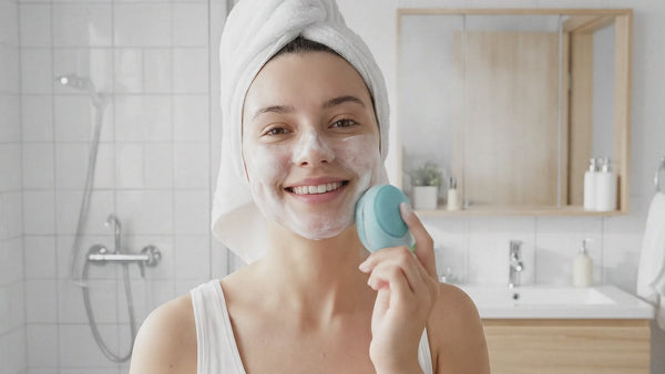 Move the brush in gentle circular motions — start at the edges of your face and work inward - Rinse & Refresh